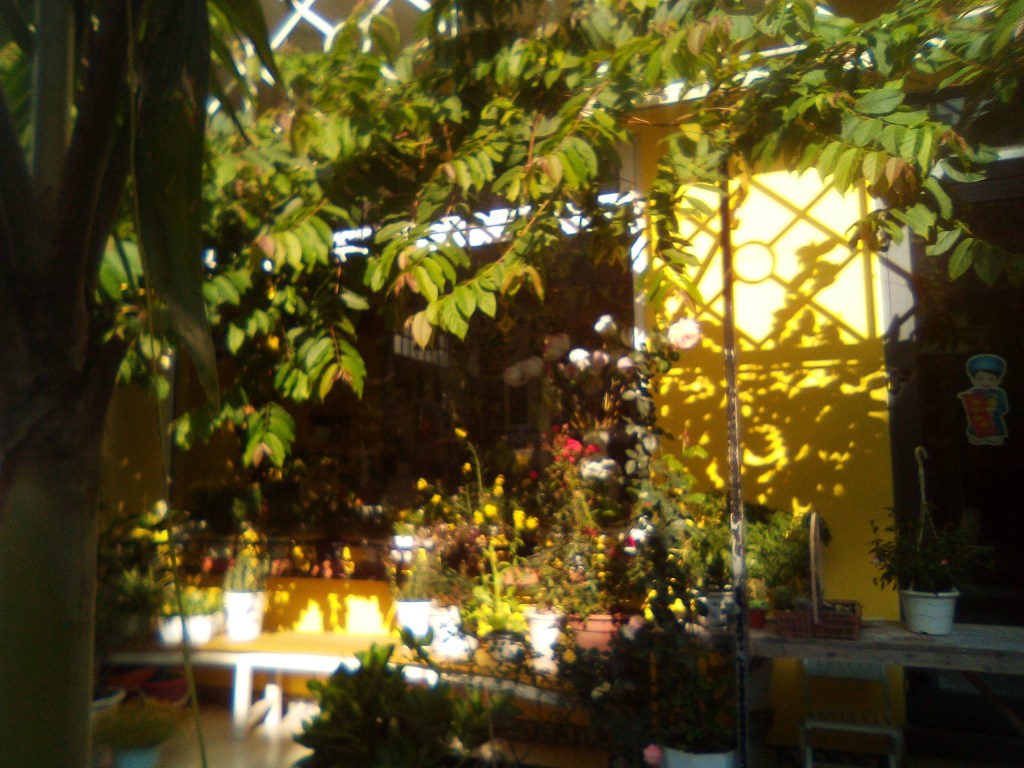 - Đầu tiên là nhà bông có đủ các loại bông tôi thích được trồng trong chậu; cây có mầm sống và luôn vươn ra đón gió đón nắng; chứ không chỉ là một vài cành bông bị cắt và gắn lên xe làm biểu tượng “có người sang sông”