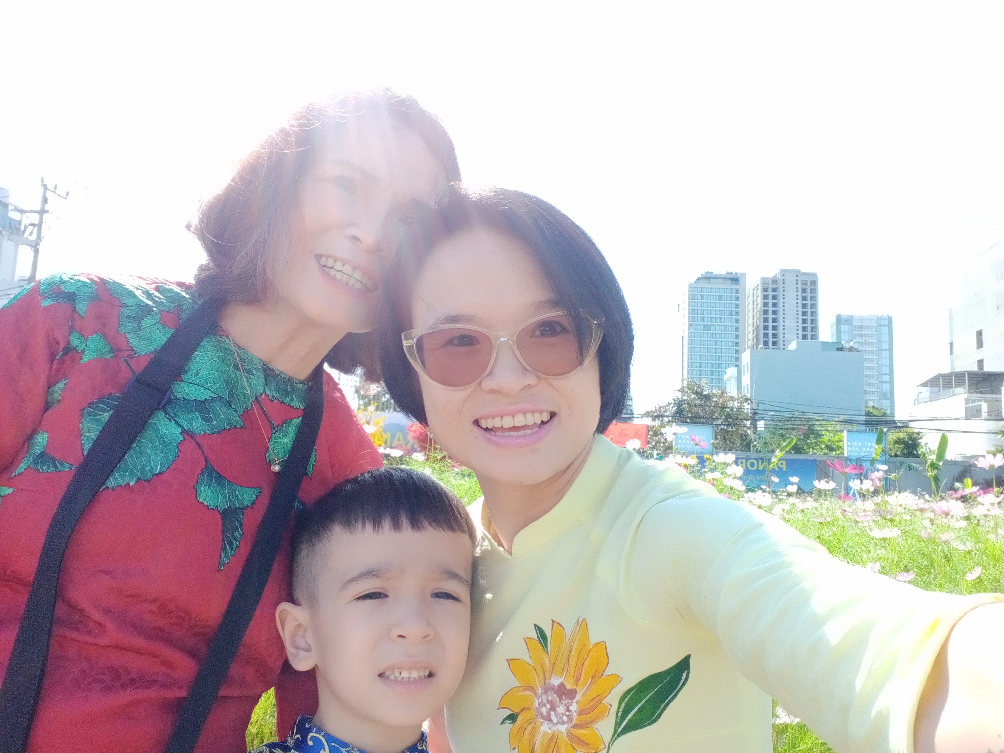 Mùng Một Tết thì cả nhà đi Chùa An Hải. Đi chùa mùng Một Tết là một nét đẹp truyền thống. Mình thích thú khi thấy Leo tíu tít theo chân Ông Bà và Mẹ; rồi bắt chước cách lạy Phật. Con nhập tâm đến mức khi ghé thăm chúc Tết bạn bè của Ông Bà, nhận được tiền lì xì con cũng…lạy để cảm ơn, khiến mọi người không nhịn được cười :))