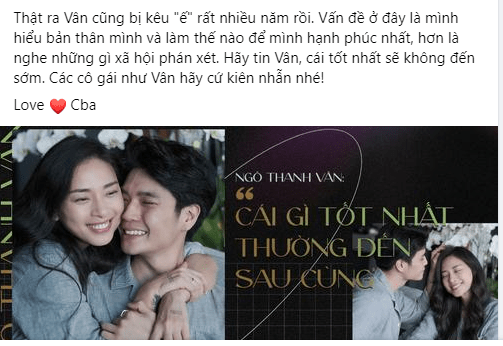 Mấy ngày này là ngày vui của Ngô Thanh Vân. Chẳng cần quen biết, mình mừng và hạnh phúc vì có thêm một người phụ nữ Việt thực sự nỗ lực không ngừng để sáng tạo ra hạnh phúc tự thân, thực sự hiểu và trân trọng giá trị của bản thân sau nhiều trầy xước và kiên nhẫn chà sáng vẻ đẹp của riêng mình mỗi ngày. Chúc mừng Vân đã tìm được người đàn ông của đời mình và đúng như Vân nói “người vừa vặn như sự chờ đơị bao năm…”