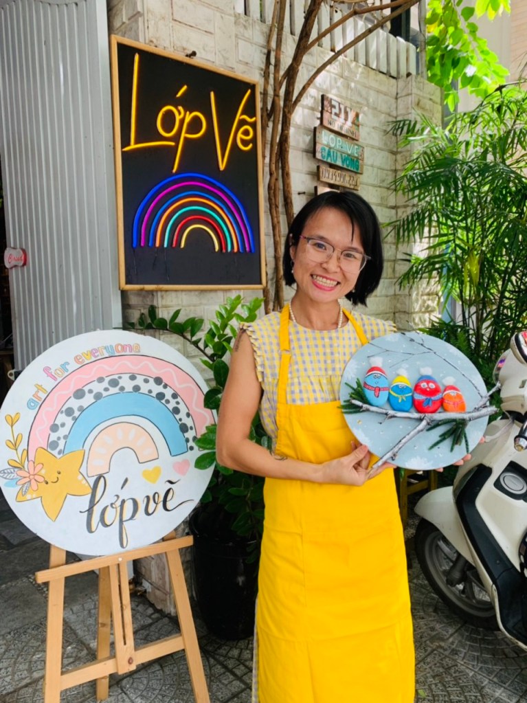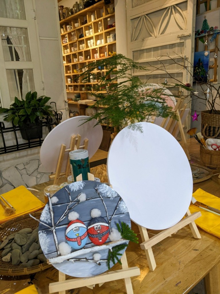 Những viên đá cuội ở bờ suối, ở vệ đường được nhặt về và khoác lên mình những bộ váy áo màu sắc, làm nên những bức tranh quá đỗi dễ thương, những trải nghiệm quá đỗi đáng nhớ là những gì mà chị em chúng tôi gởi gắm trong workshops tranh đá.