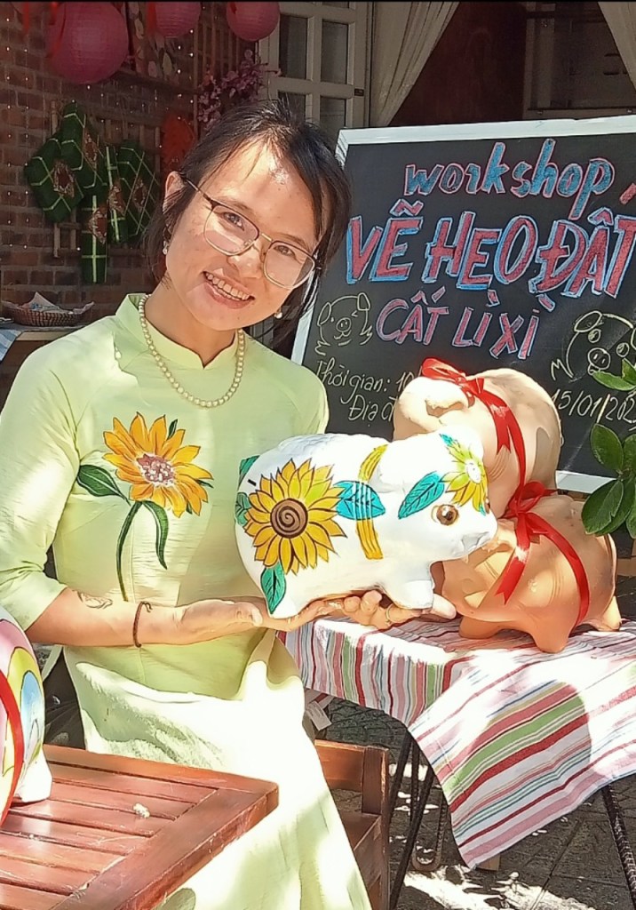 Nắng và Leo đã có một workshop vẽ heo đất tuyệt vời. Nắng chọn vẽ heo đất hướng dương và em được bình chọn là heo đất đẹp nhất của buổi workshop. Trông em thật rạng rỡ, thật rực rỡ. Chị cũng vậy và cuộc sống cũng vậy. Chị sẽ trưng em trong nhà Nắng và chị em mình cùng tỏa nắng ấm áp hết từ ngày này sang tháng khác em nhé ❤