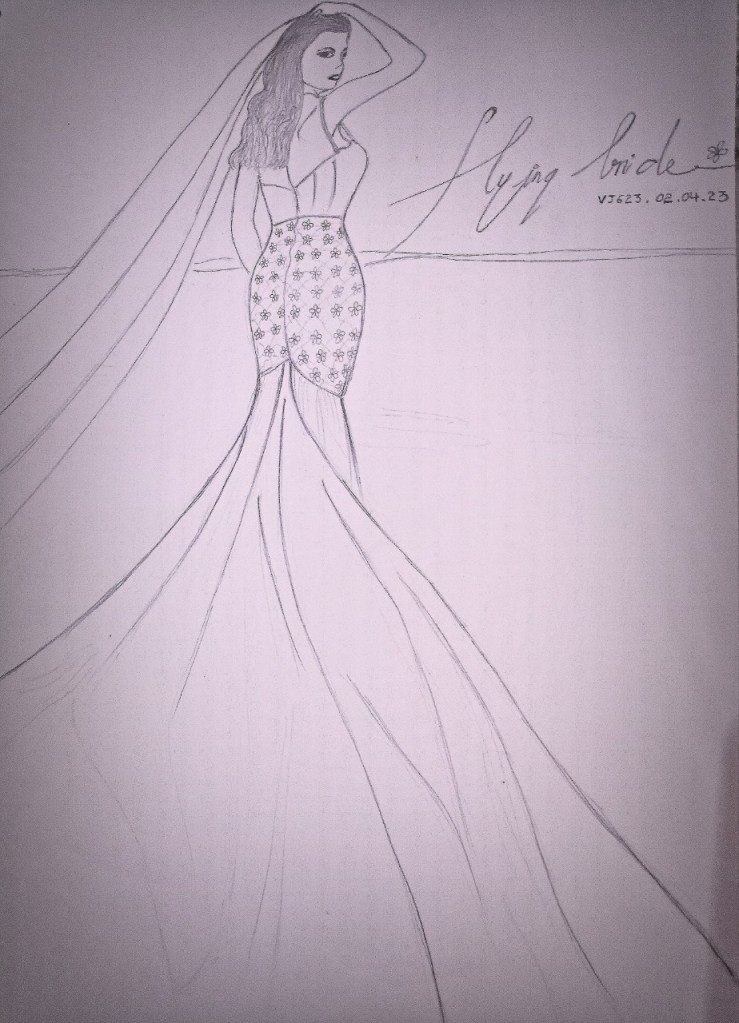 Trên chuyến bay vào SG làm việc mình hoàn thành xong 1 sáng tạo và đặt tên là Flying Bride – Cô dâu bay…Mình khá thích “concept” này khi nó cho mình cảm giác hài hòa giữa hai phạm trù Tự do và Lãng mạn