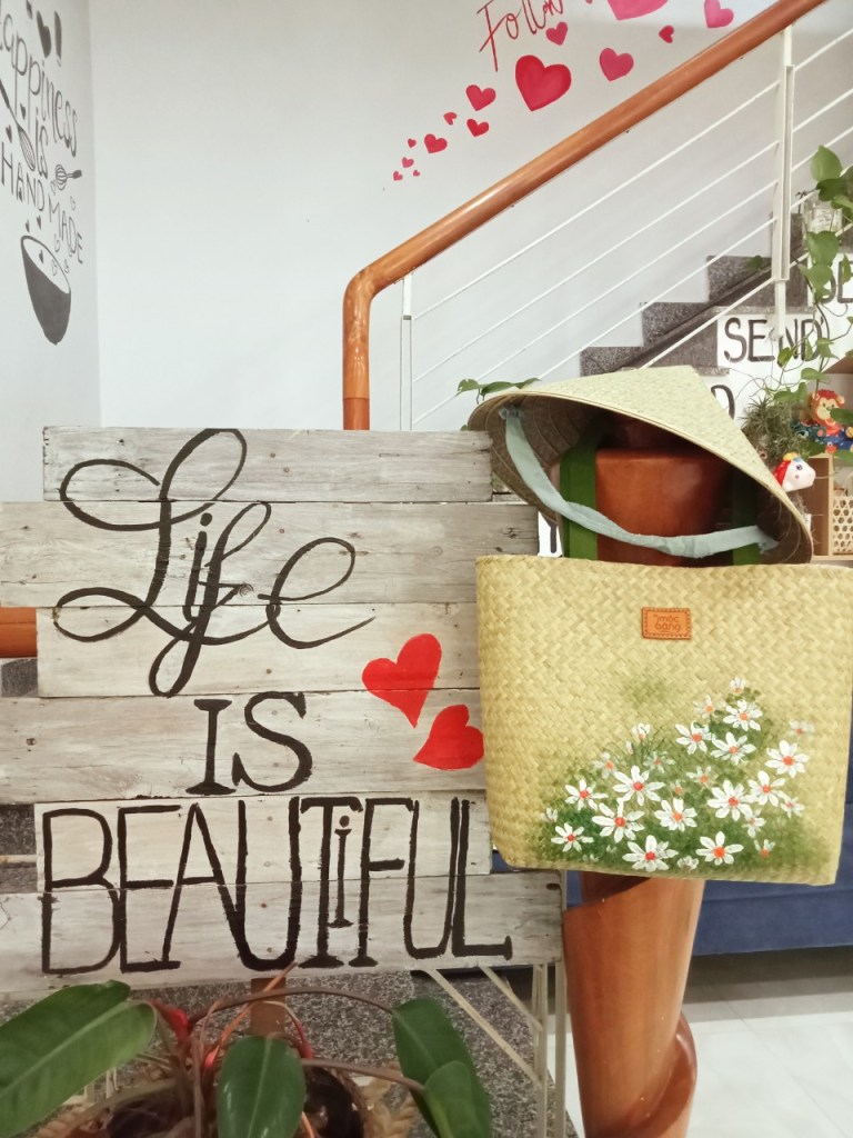 Mới nhập sản phẩm handmade của bà con ở làng nghề đệm bàng Phò Trạch về, thực sự là còn thơm mùi cói, đội cái mũ vào thấy giống đang đứng ở cánh đồng cói thiệt luôn ạ. Đáp ứng các tiêu chí phát triển Du lịch bền vững, bà con bữa nay cũng đã cải thiện thấy rõ về mẫu mã, kiểu dáng, đóng gói…