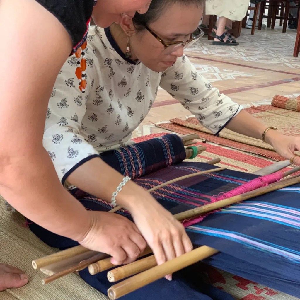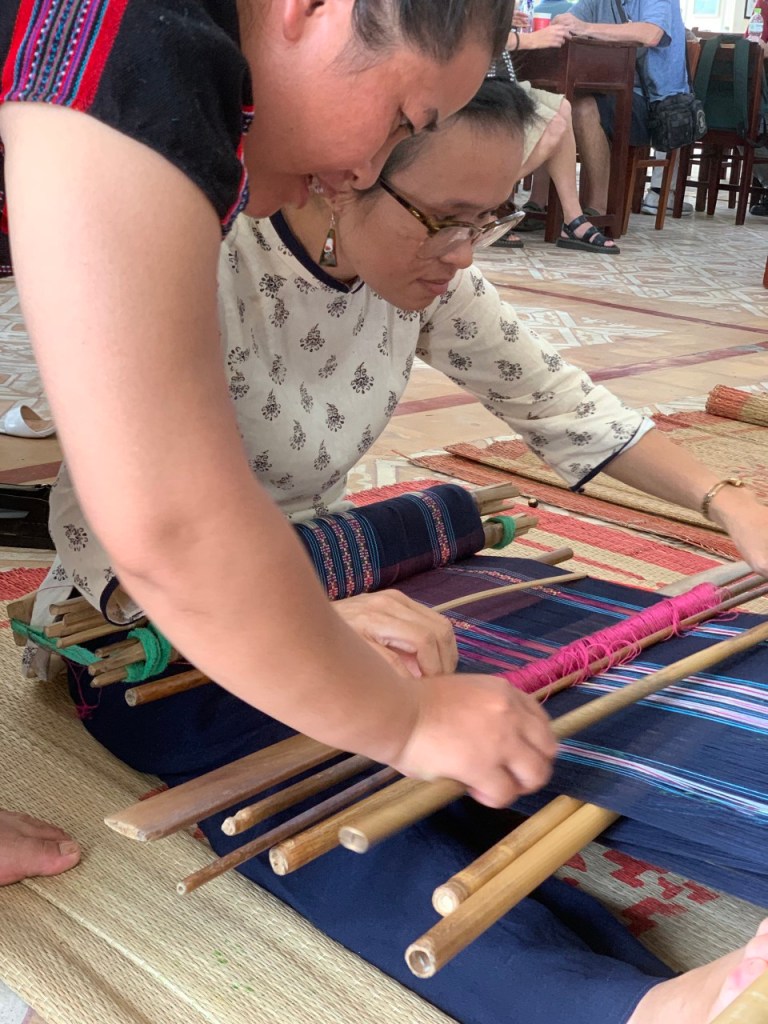 Học dệt Zèng, sái chân, dập tay, bị Nghệ nhân la như con nhỏ (thiếu điều gõ cho mấy cái vào chân). Nhưng cảm giác được hiểu một hoạ tiết hoa văn thổ cẩm nhỏ xíu được bàn tay khối óc và sự bền bỉ tạo ra như thế nào nó mới đã làm sao 😎