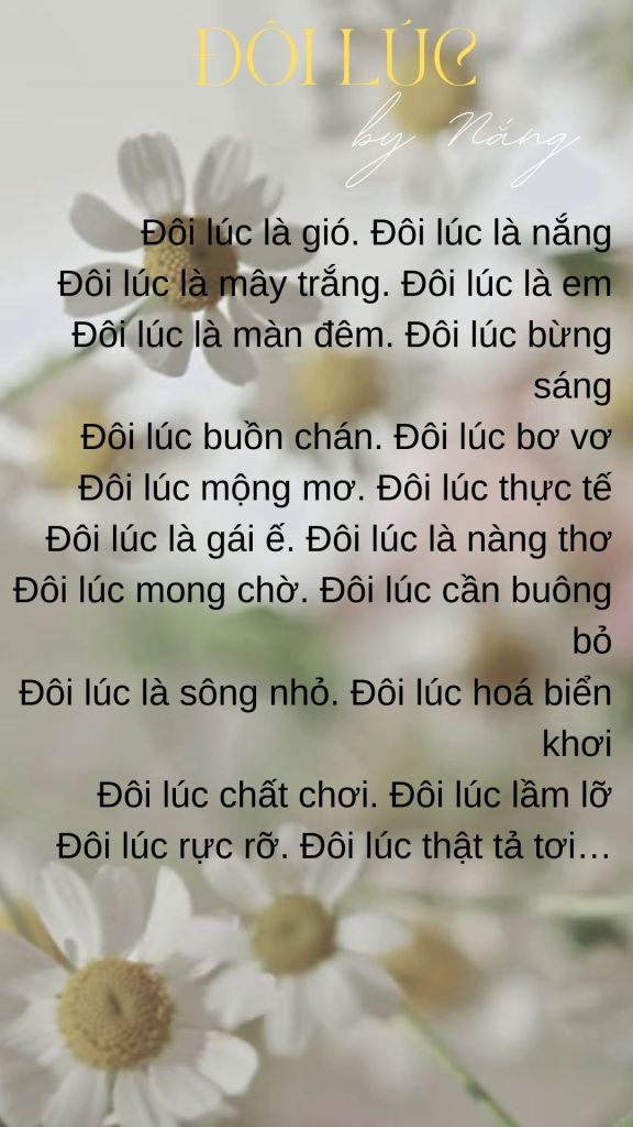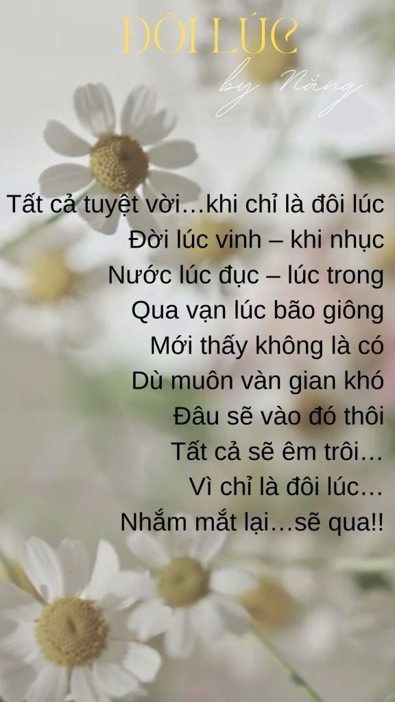 December 19, 2023 Nắng Đôi lúc… Share this: Click to share on X (Opens in new window) X Click to share on Facebook (Opens in new window) Facebook Like Loading... Related