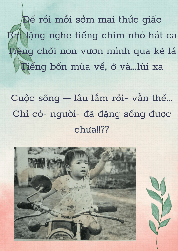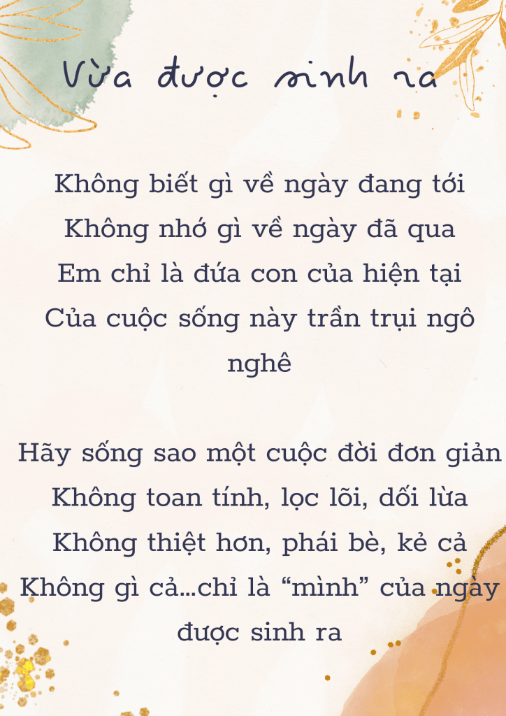 December 19, 2023 Nắng Vừa được sinh ra Share this: Share on X (Opens in new window) X Share on Facebook (Opens in new window) Facebook Like Loading... Related
