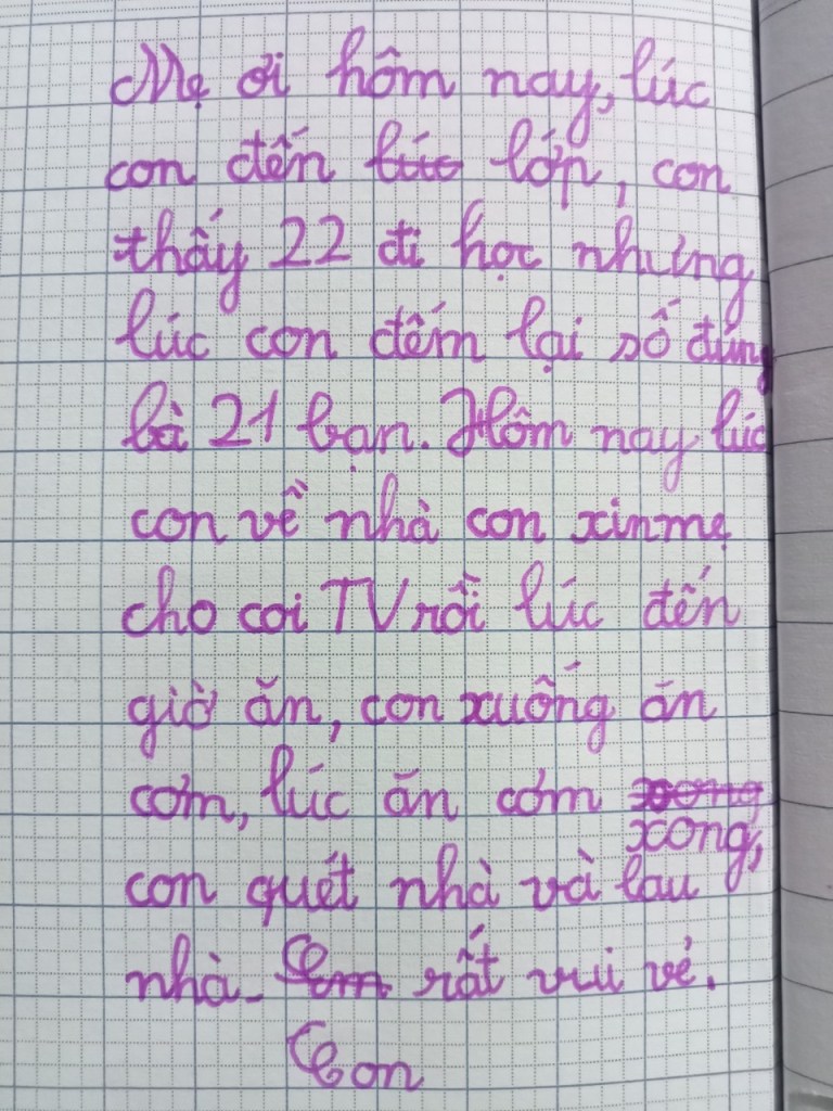 Đây là lá thư tay đầu tiên Leo viết gởi Mẹ – nét chữ đáng yêu, suy nghĩ ngây ngô. Con của Mẹ Lan nên chắc cu cậu cũng nhận ra viết là một phương tiện giao tiếp quan trọng; một cách rèn luyện sự tỉ mỉ, kiên nhẫn và cũng là cách để lưu nhớ kỉ niệm chứ não mẹ cá vàng, hay quên lắm.