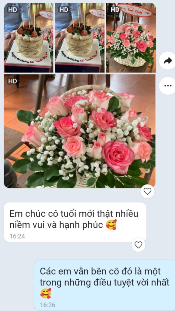 Một ngày nhìn đâu cũng thấy màu hồng, đến cái bật lửa quán cho mượn để thắp bánh sinh nhật cũng màu hường cơ mà ^^. Một ngày rất bình yên cùng gia đình và nhận được hoa và bánh từ bạn và sinh viên thân thương nhất. Một ngày chối từ hết những lao xao, chỉ giành thời gian cho những điều chân thành nhất ❤