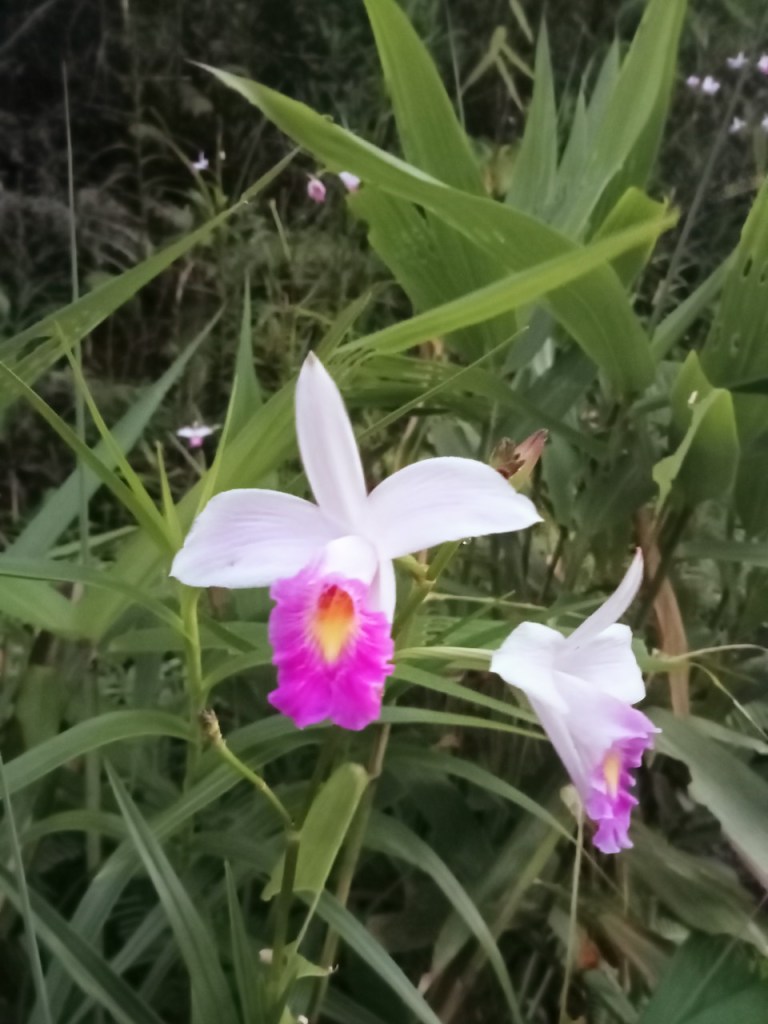 Trong một chuyến đi trekking ở vùng núi, Nắng gặp em – một loài hoa Nắng chưa từng gặp nhưng đã thấy thân quen tự bao giờ! Nắng hỏi vài người, họ bảo cũng ko rõ tên em chỉ biết em mọc hoang dã trên vùng sỏi đá, núi đồi khô khốc như vậy và hoa nở rất bền dù vào những ngày hè nắng như đổ lửa. Nhìn hoa thì có thể đoán ngay là một loại hoa Lan vì cấu tạo của đài và cánh hoa. Hoa vừa đơn giản vừa thuần khiết, cũng có cái gì đó xa cách và đài cát với sự kết hợp của 3 màu Nắng yêu thích nhất – trắng, vàng và tím.