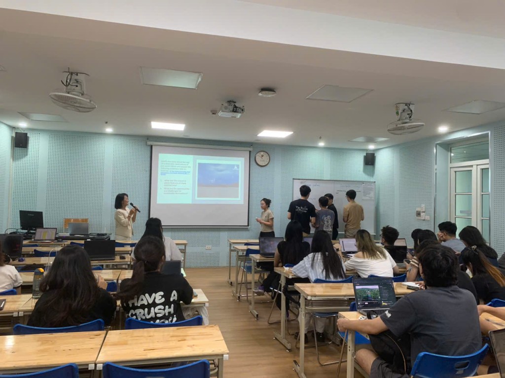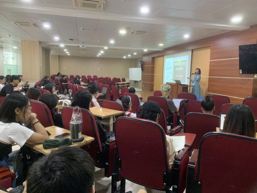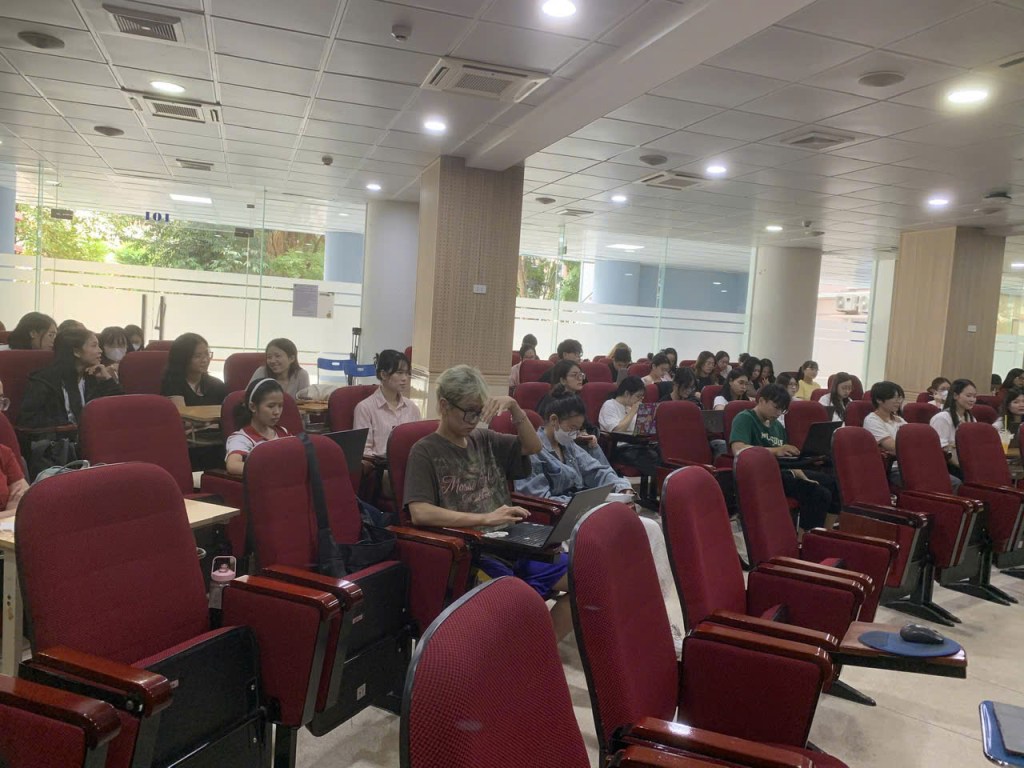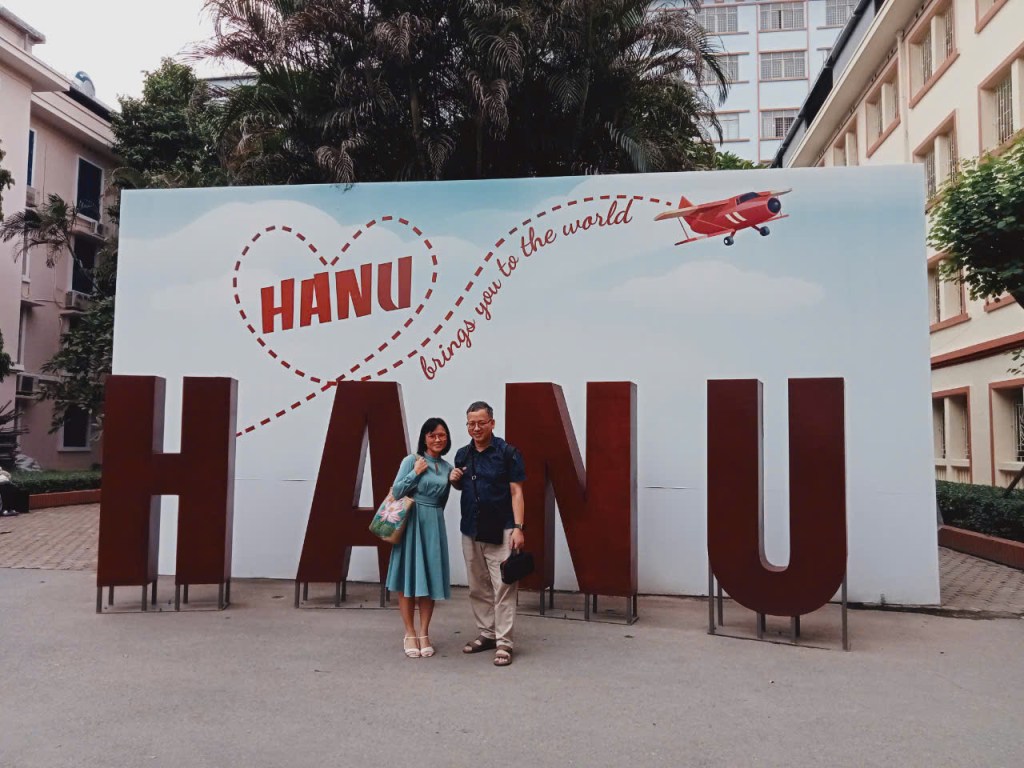 Nhiều khu giảng đường mới được xây dựng khang trang và hiện đại – tôi lọt thỏm khi đứng ở giảng đường có sức chứa tầm 100 bạn sinh viên. Nhưng không khí vẫn vậy – vẫn là một HANU rất xanh, vừa đủ cũ kỹ, vừa đủ thơ mộng. Sinh viên thì vô cùng dễ thương, ngoan ngoãn, cầu thị, hiếu khách, gần gũi và vô cùng lịch sự. Nhìn cách các bạn ấy nhẫn nại xếp 2 hàng ngay ngắn từ tốn chờ bước vào thang máy và cách các bạn ấy nói “cảm ơn cô đã chia sẻ” mà tôi muốn lịm tim ❤