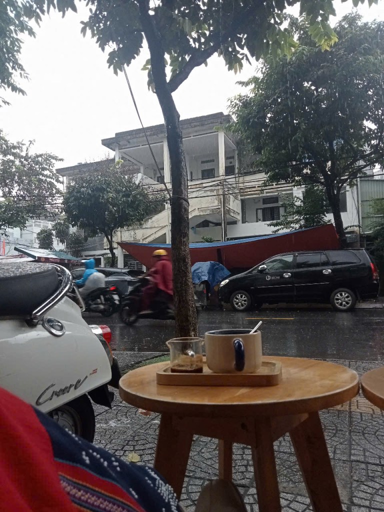 Một buổi sáng Đà Nẵng mưa, người người vẫn vội vã lao vào cuộc đời như lao vào một cuộc chiến; mình quyết định đi bộ…đi công việc! Quãng đường là 3,4 cây số gì đó (mình không quan tâm lắm!). Tiếng mưa rơi bộp bộp trên chiếc dù nhỏ; tiếng những bạn tài xế xe ôm công nghệ hỏi nhanh xem mình có muốn đi không…ai cũng vụt qua quá nhanh, mình còn chưa kịp nở xong một nụ cười chào hỏi…Đành vậy, nụ cười nở ra và ở lại sau lưng những con người rất vội…
