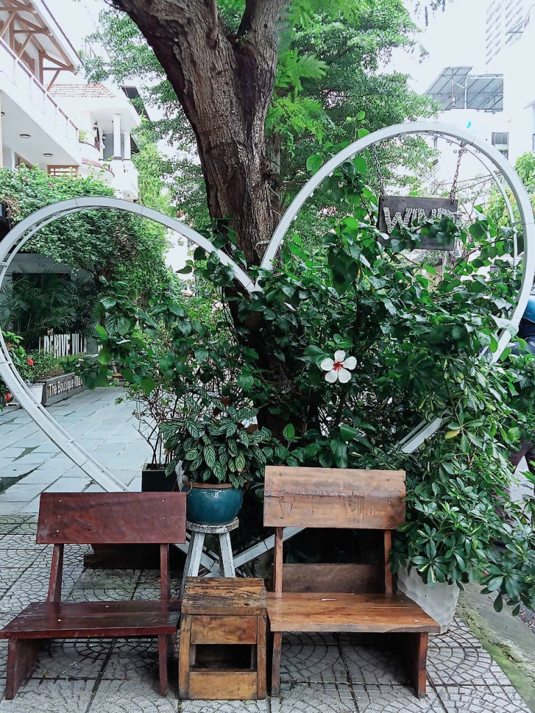 Mình ghé vào một tiệm cây xanh mướt bên đường. Cậu bé trông tiệm mải mê lướt điện thoại không hề biết mình đã đứng ngắm cây được một lúc…định hỏi chuyện nhưng thôi…Mình đi tiếp và ghé vào một quán cà phê, ngồi nghỉ chân, nghe nhạc và nghe mưa…
