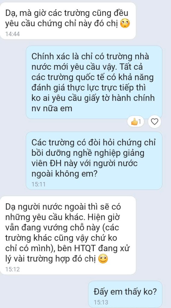 Một đồng nghiệp cũ ở trường ĐH nhắn tin hỏi mình có muốn đăng ký học lớp bồi dưỡng nghề nghiệp giảng viên đại học như là một tiêu chí bắt buộc cần có trong hồ sơ nếu muốn dạy ở các trường công. Mình đã từng bỏ không thèm lấy cái chứng chỉ đó khi biết nó chỉ mang tính hình thức, nên đây là câu trả lời của mình – trăm lần hỏi vẫn một câu trả lời đó: không có chuyện thỏa hiệp!