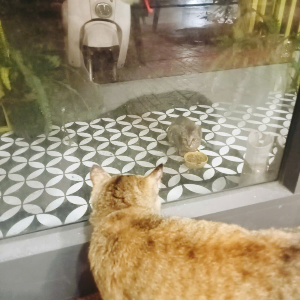 Trời mưa phùn, có một em mèo ở đâu lang thang thấy Nắng đi về là quấn lấy quấn để. Em ấy trông giống hệt Lisa lúc bé. Ăn cơm tối xong, trời vẫn mưa, em ấy vẫn lẩn quẩn ở sân nhà. Kêu mãi, Nắng lên lấy ít đồ ăn của Lisa xuống cho ẻm ăn. Ẻm đang ăn thì Lisa đi xuống, ngay lập tức ngửi thấy mùi mèo lạ ngoài sân đang ăn đồ ăn của mình; Lisa phóng ra…may mà Nắng đã đóng cửa. Lisa gầm gừ, lông xù lên rồi hù con nhỏ một cái khiến em ở ngoài tấm cửa kính cường lực mà còn té bật ngửa…