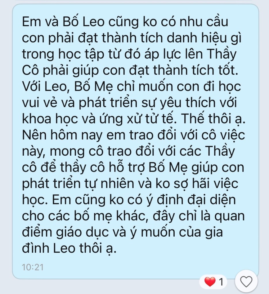 Kết quả là Leo học chẳng nổi trội môn nào và không đăng kí thi thố bất cứ bộ môn nào nhưng bù lại con còn nhiều hào hứng với việc học và rất yêu thích và tự do với sáng tạo ^^. Bất kể hình thức – vẽ, nhảy, hát hay làm powerpoint con đều rất sáng tạo – đây là món quà tuyệt vời cho sự kiên định và giữ vững lập trường của mẹ trong việc nuôi dạy con ❤