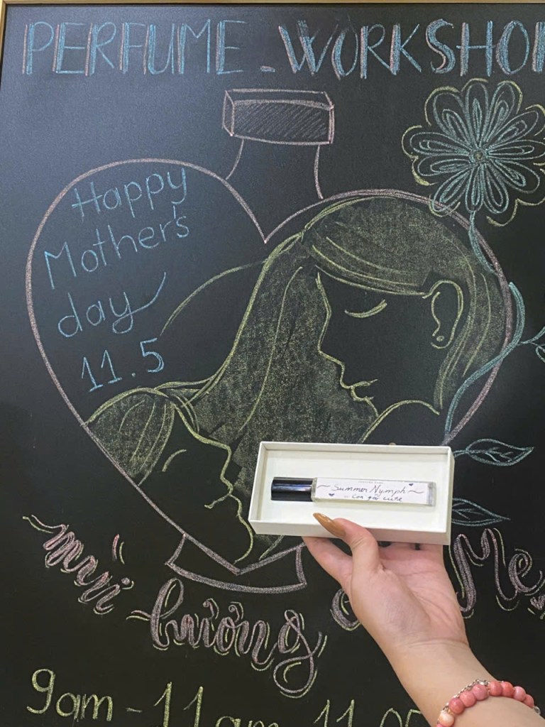 Hôm nay là ngày của Mẹ; Nắng tổ chức miễn phí workshop làm mùi hương tặng Mẹ (nhiều bạn khó tin nhưng Nắng thích vậy thôi, ko có gì đặc biệt). Điều tuyệt vời nhất là Nắng đã góp phần tạo ra động lực và môi trường thoải mái nhất để các bạn thể hiện tình cảm với Mẹ – điều mà những người con ai cũng có nhưng không phải ai cũng thể hiện được bằng lời dễ dàng.