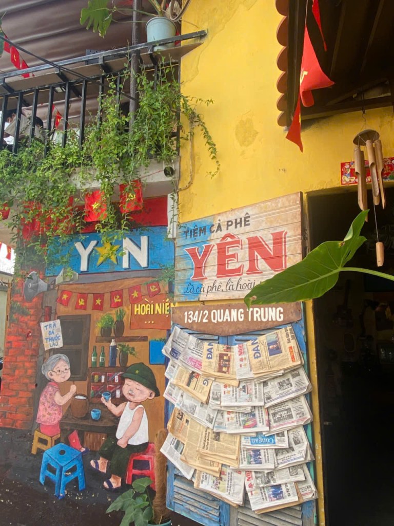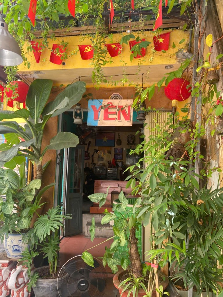 Có những ngày thành phố vẫn ồn ào như mọi khi, nhưng em chỉ muốn tìm về một góc nhỏ xưa cũ — nơi có tấm bảng gỗ treo chữ Yên mộc mạc giữa giàn dây leo, những lá cờ phấp phới như lời chào thân quen.