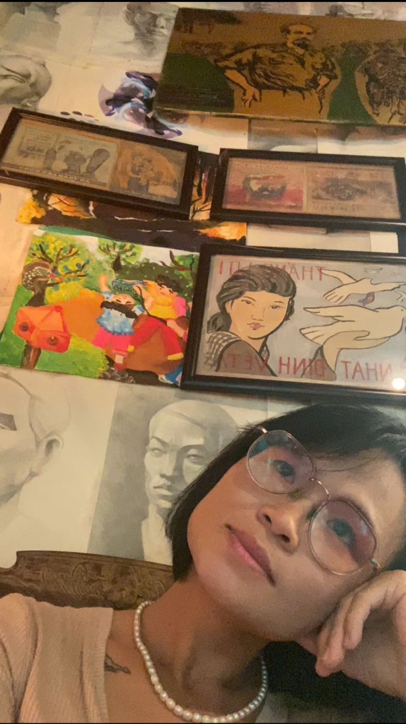 Em ngồi đó…rất lâu…không ai vội…không ai ồn ào. Em thấy mình trong gương, một người phụ nữ không quá già cũng chẳng còn trẻ, tựa đầu vào tay, ánh mắt xa xăm — và em hiểu: hôm nay mình không đi tìm bình yên nữa…