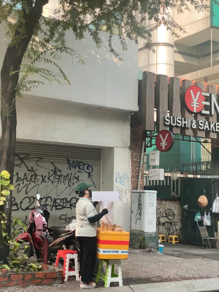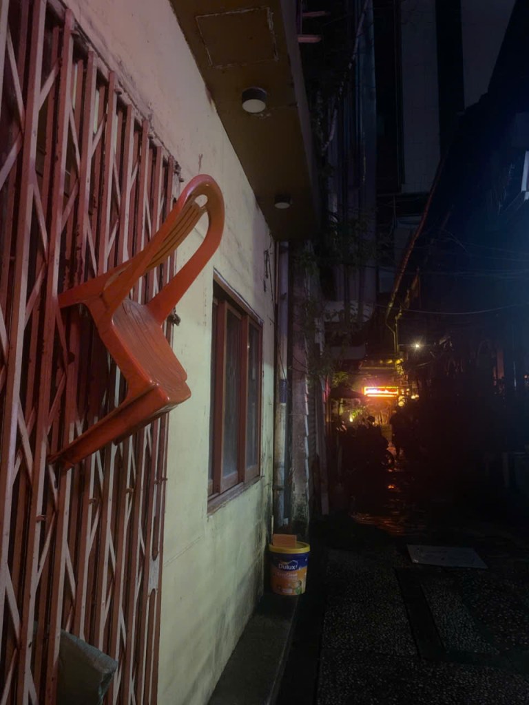 Lần này vào Sài Gòn dự hội thảo và đi công việc, mình có dịp ngắm nhìn thành phố từ những góc nhìn thật hơn: qua cửa xe taxi phải dừng lại rất lâu vì kẹt xe; ngồi sau lưng một bạn sm xanh đang học thanh nhạc nên bạn vừa lái xe chở mình…vừa hát bolero ^^ hay ghé vào một ngõ vắng hun hút leo lét đèn với chiếc ghế đỏ cài cửa…như một nghệ thuật sắp đặt tự thân!