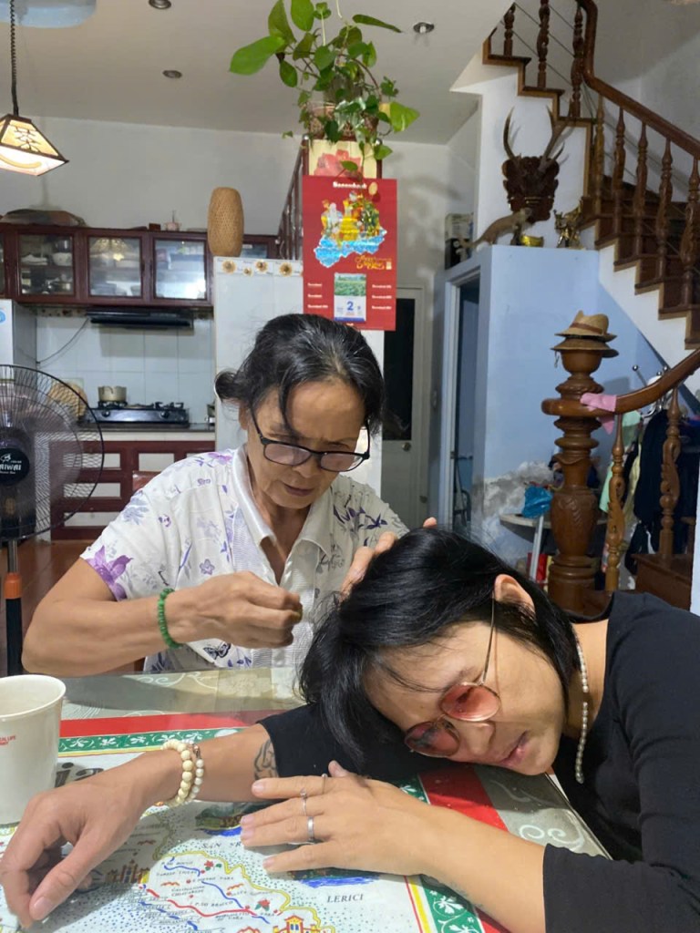 Khoảng khắc đáng nhớ nhất hôm nay là lúc Má nhổ tóc sâu cho mình. Má bảo chỉ có vài cọng thôi, tóc con vẫn đen lắm…Câu nói ngỡ bình thường nhưng bất giác khiến mình nhận ra – thời gian bên Ba Má không còn là vô tận…