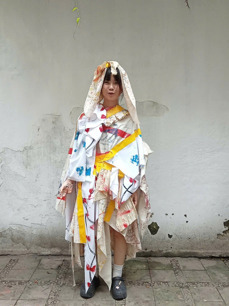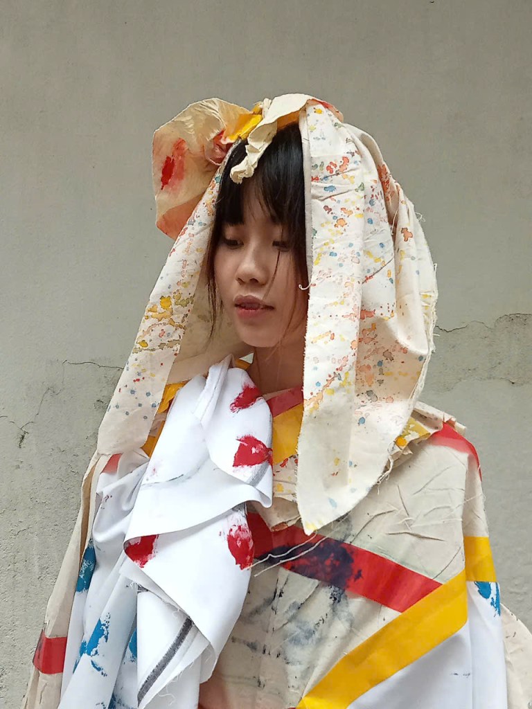 Những khóa học hay thì dù xa xôi, vất vả, tốn kém thế nào…Nắng vẫn tìm đường đi học. Và việc học chưa bao giờ làm Nắng phải thất vọng! Đây là sản phẩm styling thực chiến đầu tiên trên mẫu thật của hai chị em. Các tấm vải được áp dụng kĩ thuật “in” bằng tay từ những chất liệu, nguồn cảm hứng trong đời sống hàng ngày; sau đó được cắt ngẫu hứng và ứng tác để tạo ra trang phục. Quy trình cũng giúp Nắng nhận ra mình có thể không quá giỏi về cắt đo, may vá hoặc tạo hoa văn trên vải nhưng có một độ nhạy khá đặc biệt về styling và phong cách – mình có thể cảm nhận rất nhanh sự phù hợp, tương thích, hài hòa giữa tính cách, khí chất với màu sắc, trang phục và mùi hương. Với Nắng, học không phải là một công cụ để đạt được điều gì; học là một thành tựu của bản thân!