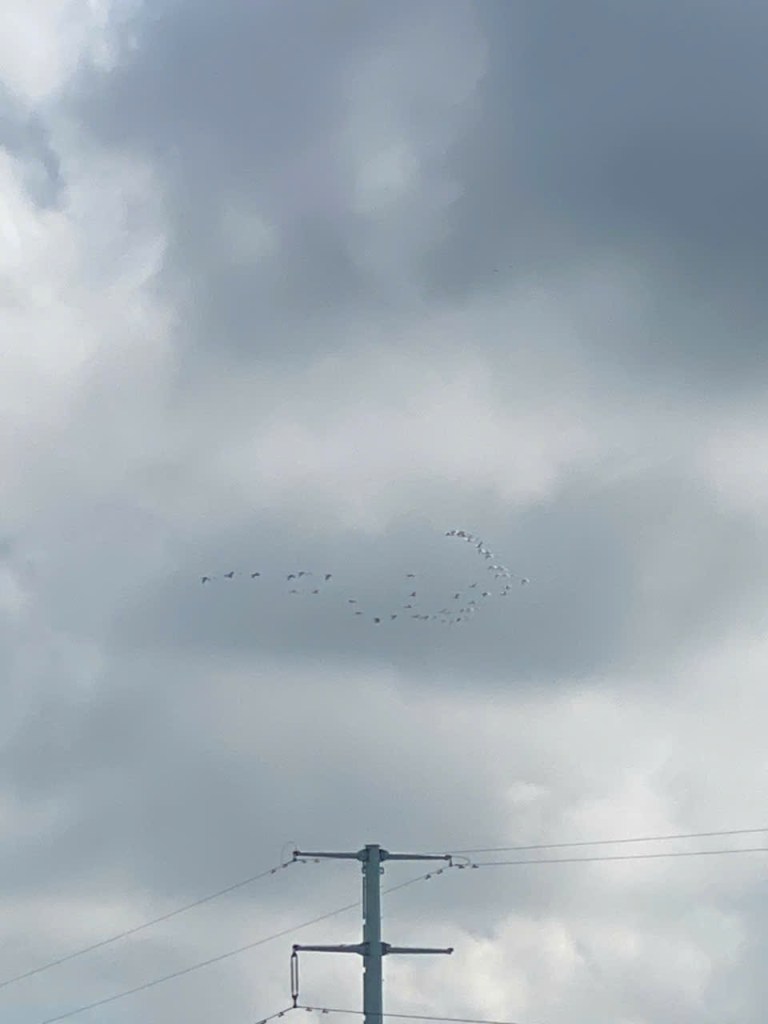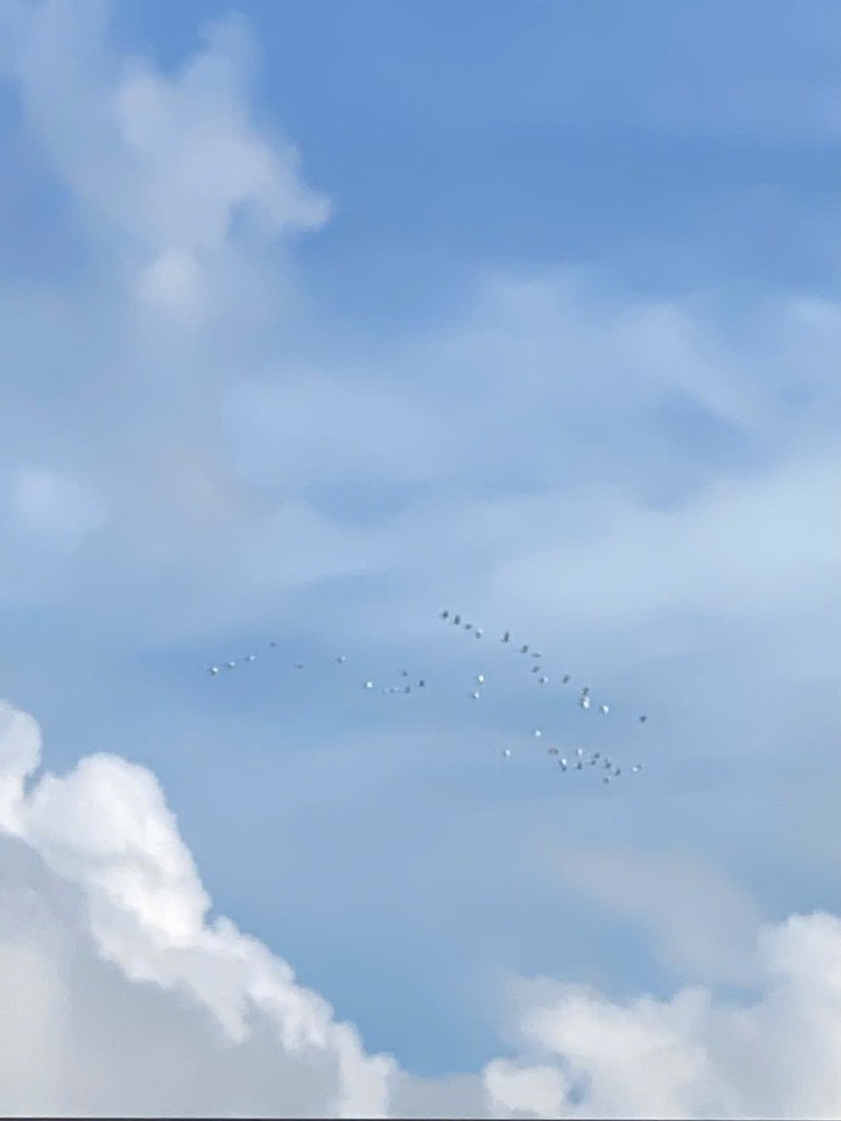Sáng nay đang ngồi nhâm nhi ly trà, xem trực tiếp truyền hình diễu binh, diễu hành thì bỗng thấy một đàn chim bay qua trên nền trời xa xa…