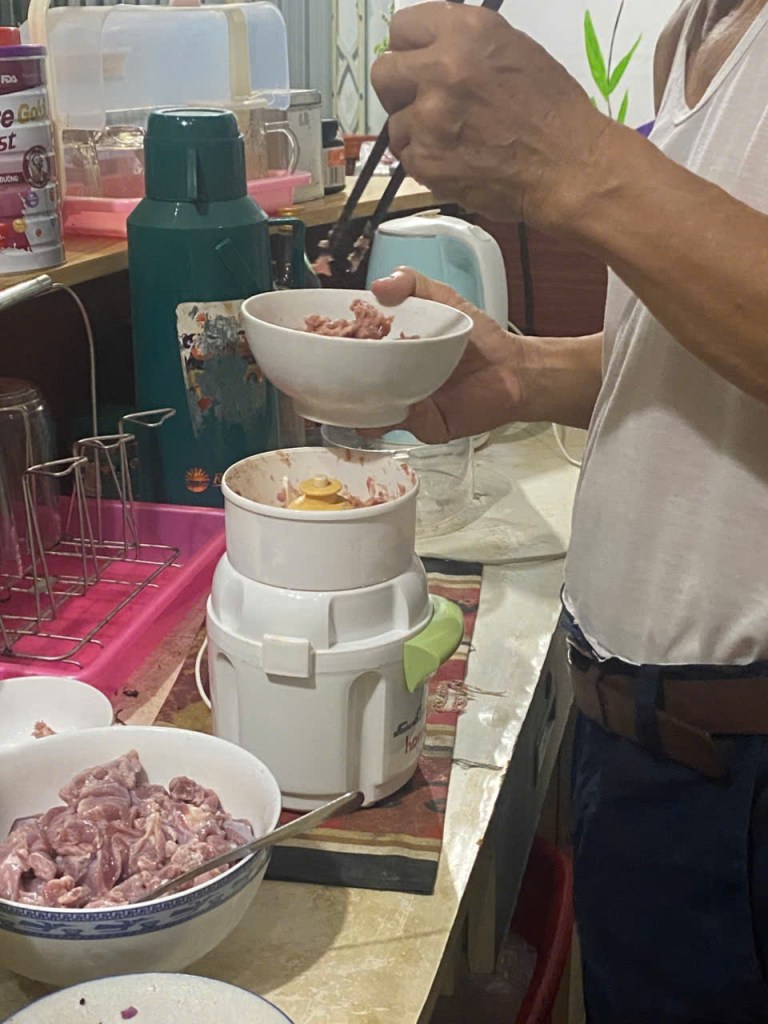 - Xay thịt khi lạnh để tạo độ kết dính tốt.
