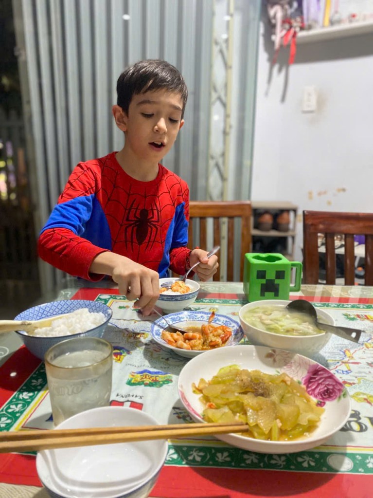 …không biết có ông Bố bà Mẹ nào giống mình không, nhưng mình thấy từ khi một đứa trẻ đi học mẫu giáo hay cấp I…là khoảng thời gian ở bên cạnh con trong một ngày nó rất ít! Con bận học, mẹ bận công việc, rồi chưa kể các khoản thời gian cá nhân, rồi thói quen sở thích riêng…nên thời gian trọn vẹn bên nhau thật sự không nhiều :(. Thời của mình, một đứa trẻ sẽ ở bên Bố Mẹ đến 18 tuổi, còn thời nay không hiểu sao mình có cảm giác những đứa trẻ sẽ trưởng thành sớm hơn, như những chú chim sẽ biết bay và rời khỏi chiếc tổ của mình sớm hơn…Thế nên nhiều lúc nhìn con ăn cơm ngon lành mà mình chạnh lòng…muốn thu vào mắt cảnh con ăn cơm nhà càng lâu càng tốt đặng mai này đỡ nhớ một bình yên…