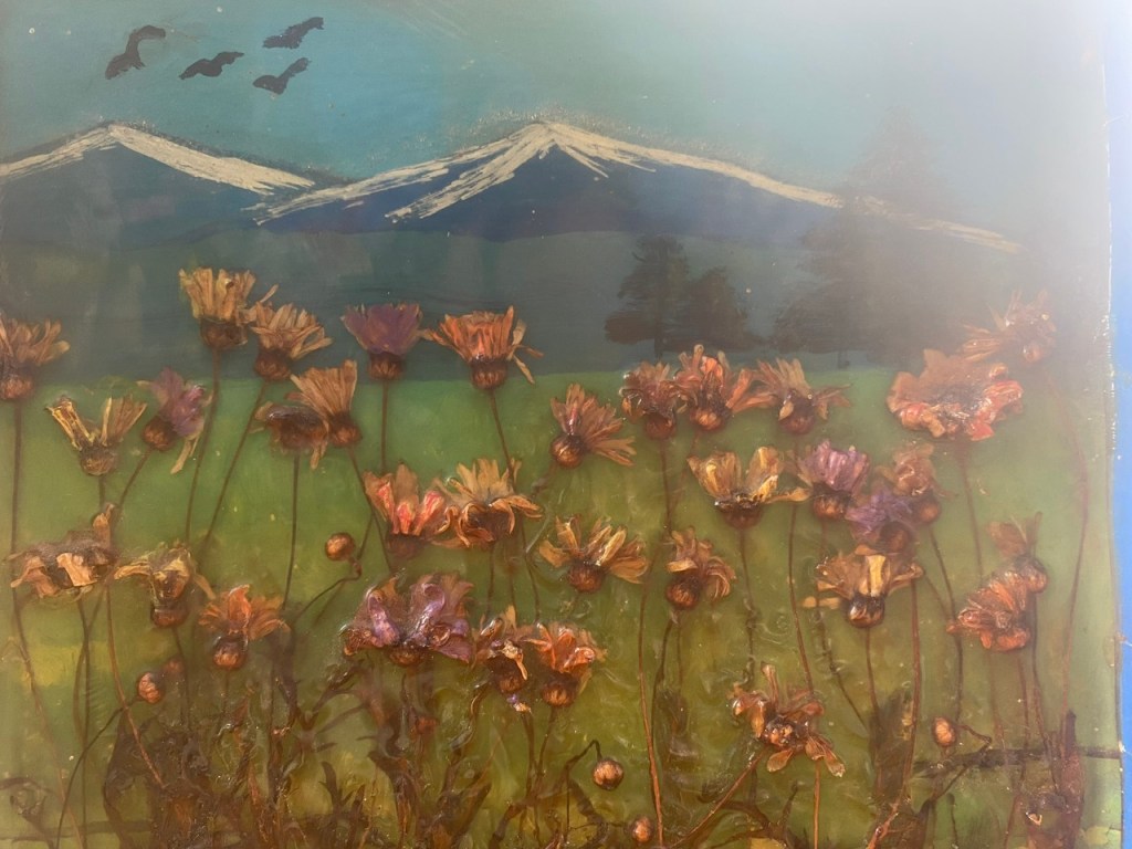 Tôi có một sở thích mà lâu nay vì quá nhiều sở thích trong quỹ thời gian hạn hẹp, tôi ít làm. Hôm nay tôi thực hành lại sở thích này – làm tranh từ hoa khô- và tôi cảm nhận một trạng thái mới của những bông hoa khô tôi đã làm từ cách đây 2,3 năm – đó là trạng thái “Sống ra hoa nở”. Các bông hoa khô (đã chết) vẫn đang sống và nở hoa trước mắt tôi đây thôi.
