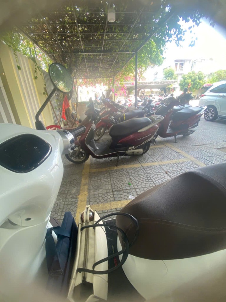 Tôi đi làm một vài giấy tờ hành chính. Khi vào khu đỗ xe, tôi thấy rất nhiều xe máy để tràn ra ngoài, trong khi bên trong còn rất nhiều chỗ trống. Tôi đi vào sâu bên trong, dựng xe gọn gàng, chừa thật nhiều khoảng trống bên cạnh để xe khác vào. Sau đó chụp một bức ảnh “tự sướng”, tự ghi nhận sự “chỉnh chu” của bản thân!